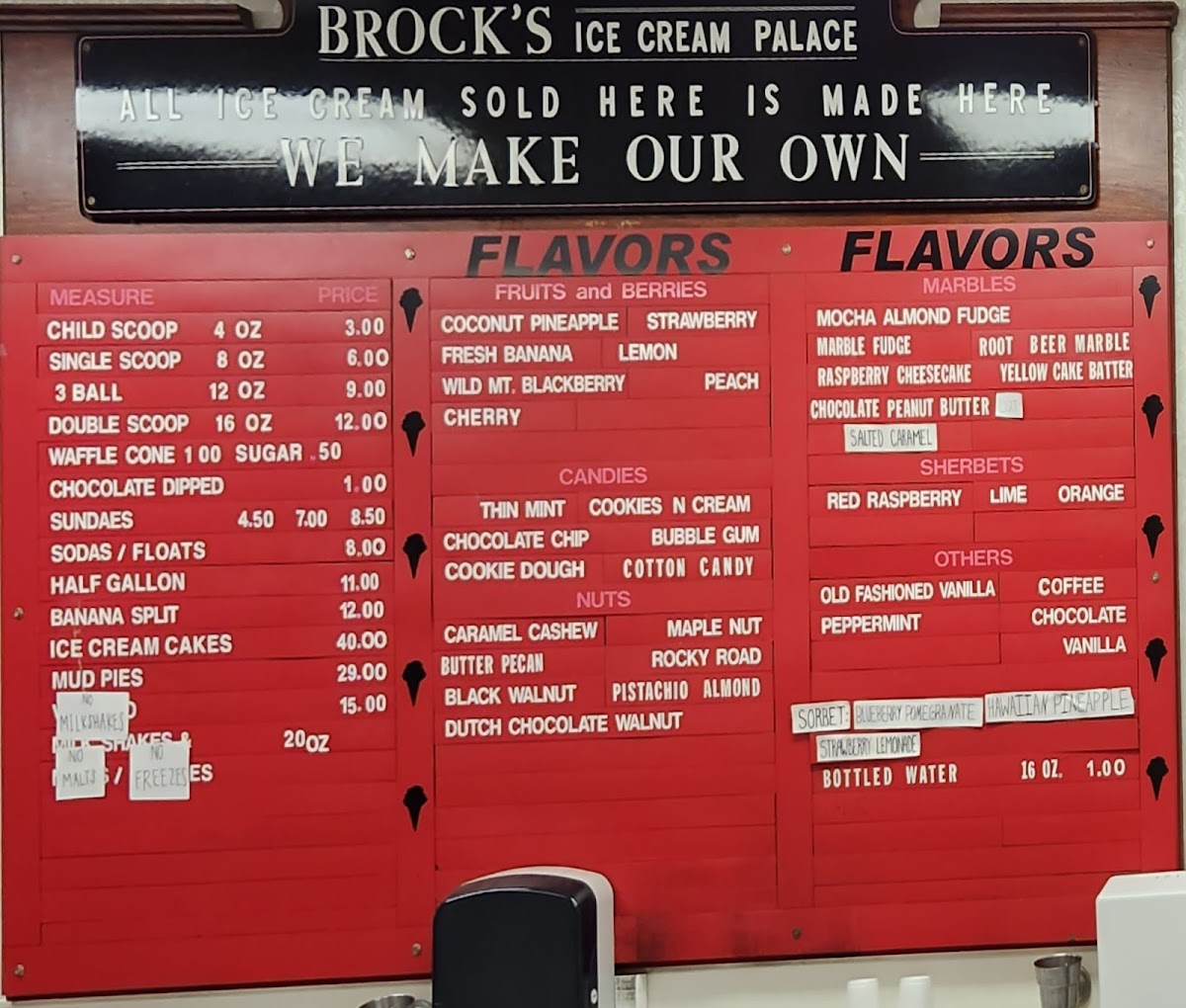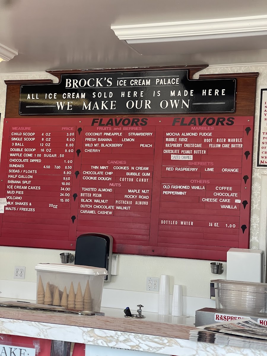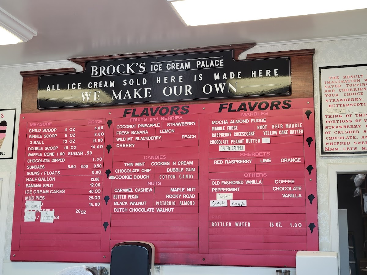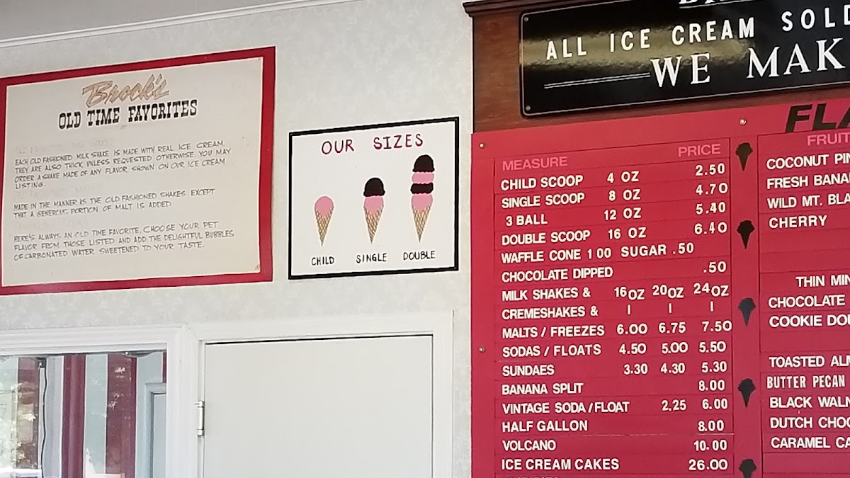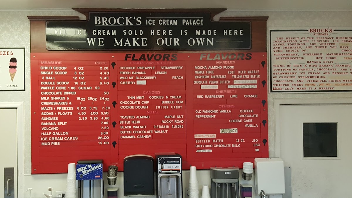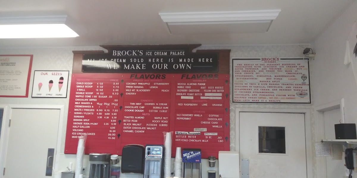 Brock's Ice Cream Inc Menu